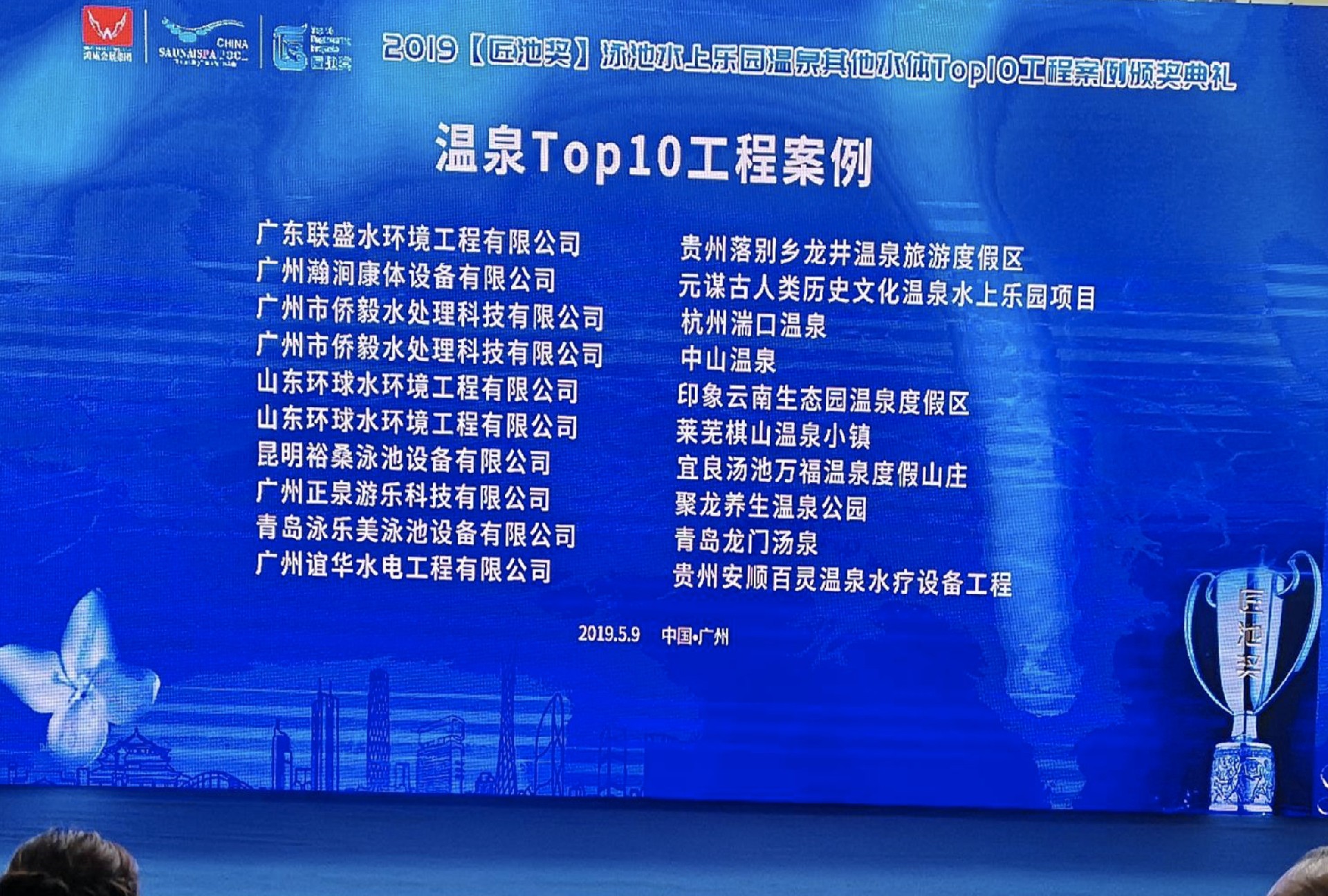 2019年5月9日,2019年亞洲泳池SPA博覽會暨【匠池獎】頒獎典禮在廣州?廣交會展館隆重舉行,青島泳樂美泳池設備有限公司應邀出席。
